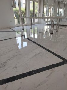بعد الجلي، تأتي مرحلة تلميع الرخام والتي تتم باستخدام أفضل مواد الكريستال الإيطالية التي تمنح الرخام لمعاناً كالمرآة وتحميه من التآكل السريع.